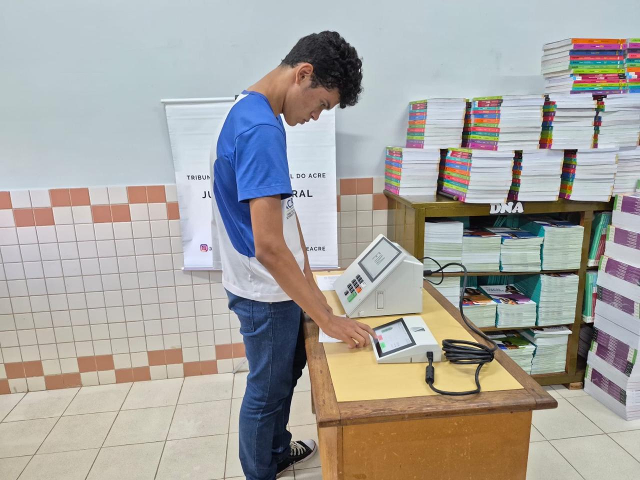 Além da oferta dos serviços eleitorais — como coleta da biometria, atualização cadastral e regularização da situação eleitoral —, a equipe do TRE-AC também disponibilizou urna eletrônica para simulação de votação. A atividade permite que os jovens tenham contato direto com o sistema eletrônico de votação, fortalecendo a educação para a cidadania e a confiança no processo eleitoral.