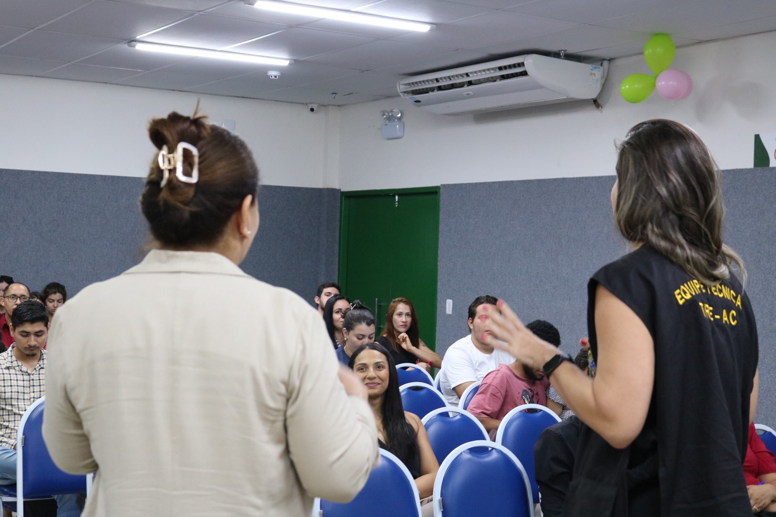 O Tribunal Regional Eleitoral do Acre encerrou, nesta segunda-feira, 2, a programação da Semana de Combate à Desinformação com um encontro voltado aos estudantes do curso de Direito da Unama, do 7º e 9º períodos, que reuniu 85 participantes. A atividade foi conduzida pela secretária da Escola Judiciária Eleitoral (EJE), Ana Cátia, e pela assessora de Comunicação do TRE-AC, Daniele Carlos, em um momento de reflexão sobre democracia, responsabilidade institucional e o papel do Direito diante dos desafios contemporâneos da informação.